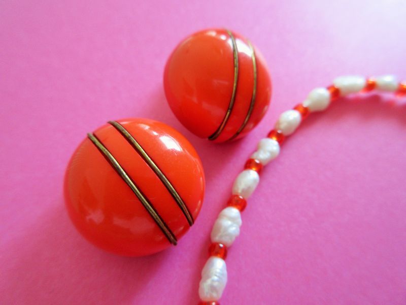 米粒パールとクリアなオレンジ色ビーズが、交互に連なったブレスレット。