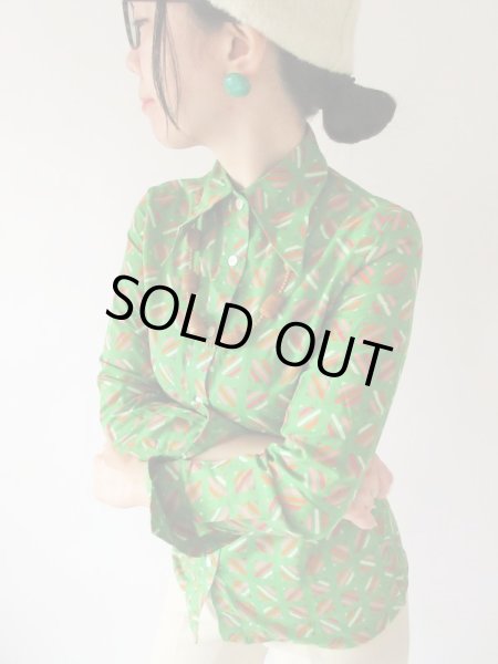 未使用*鮮やかグリーンのスクエアー柄シャツ [clo1023]