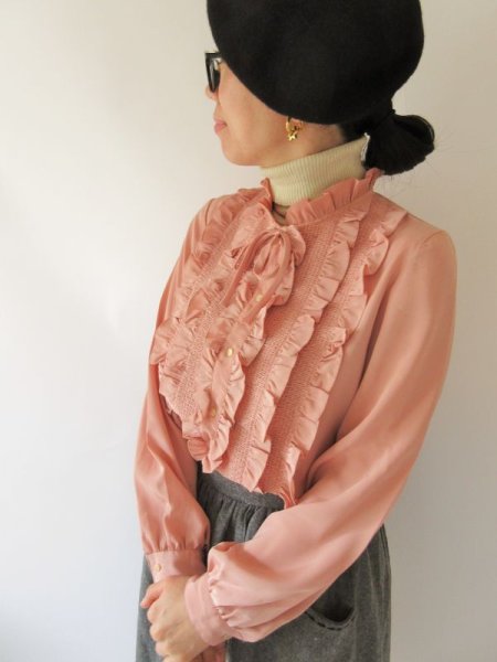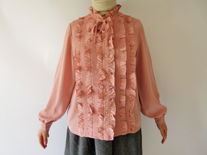 華やかで上品なフリルデザインが魅力的なヴィンテージブラウス。