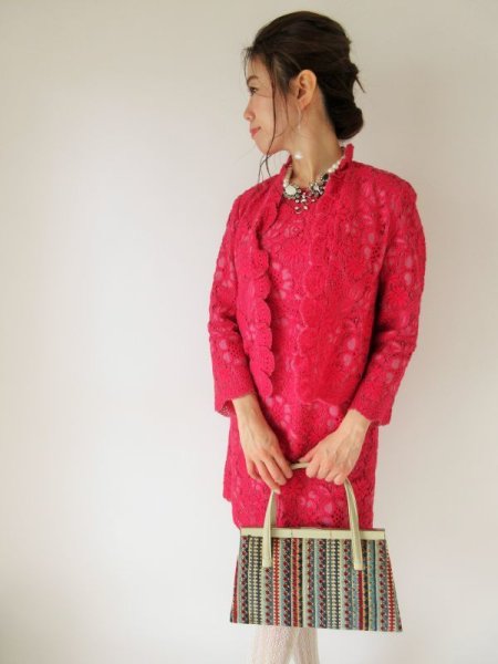 超豪華なお花柄のヴィヴィッドピンクの生地で仕立てられた
