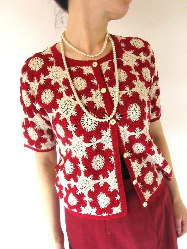 華やかなフラワーモチーフのカーディガンです。