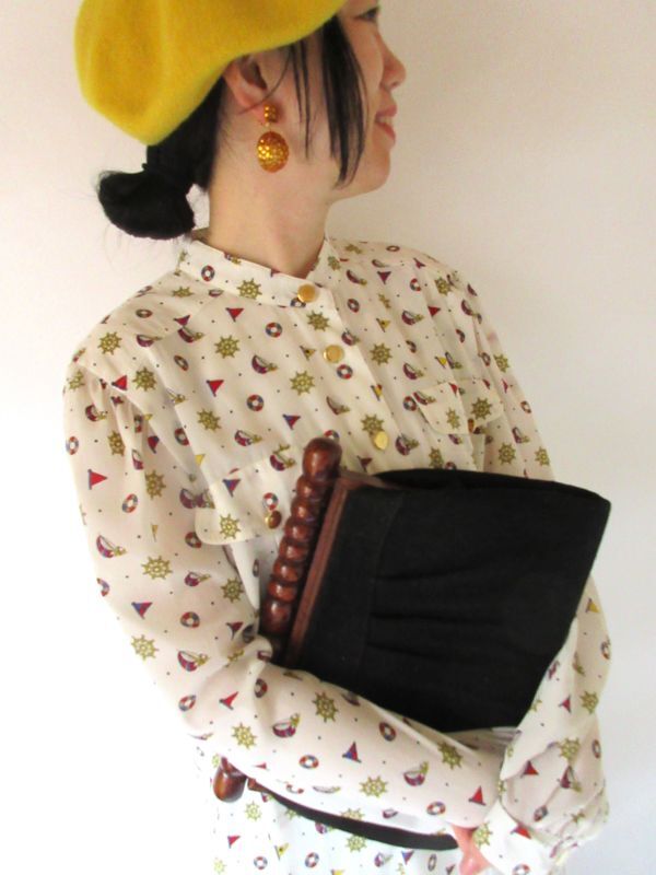 明るいマリン柄が印象的なヴィンテージワンピース。