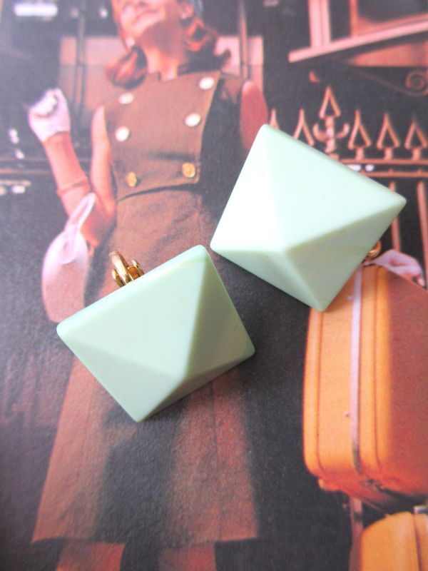 優しいグリーンのニュアンスカラーが魅力的なイヤリング。