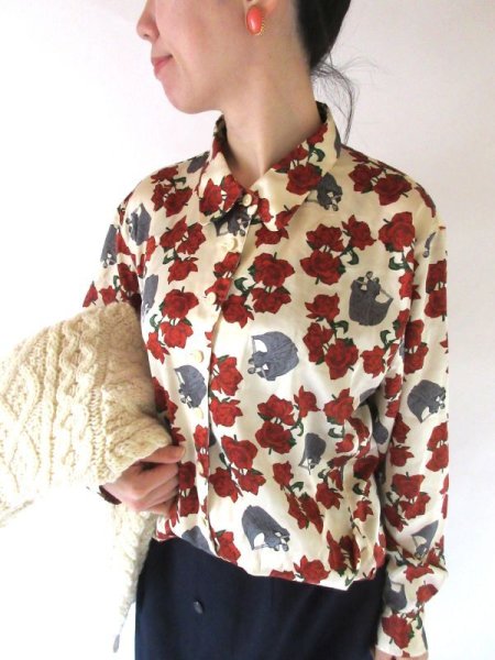 【ゆったりsize*】バラと踊る貴婦人柄ブラウス [clo0329]