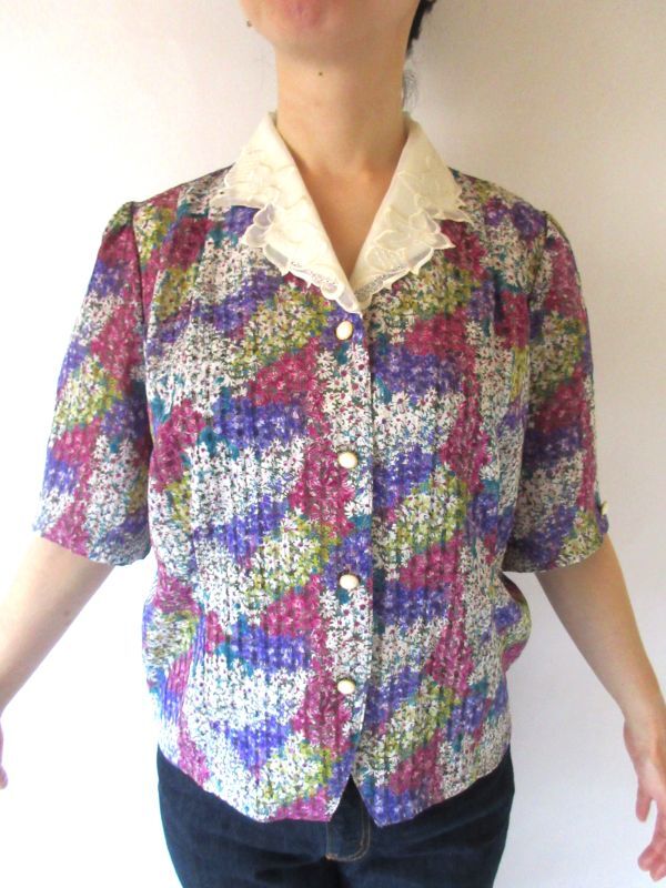 レトロムードのある配色がオシャレなヴィンテージブラウス。