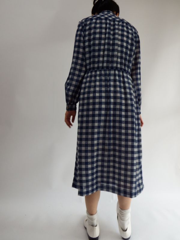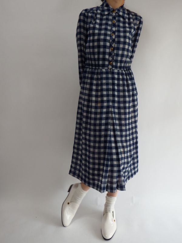 紺×白のレトロな格子柄のヴィンテージワンピです!