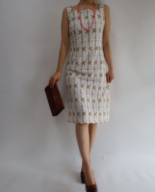 上品な刺繍柄のお仕立て品のヴィンテージワンピースです♪