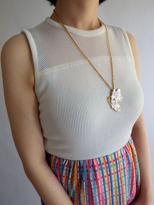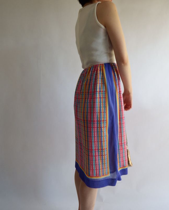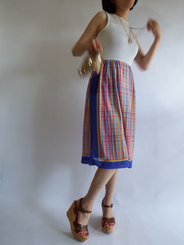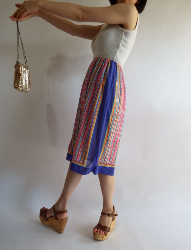 レトロな雰囲気たっぷりの配色の柄生地なのでさらりと1枚で着てバッグや小物、アクセサリーで変化を楽しんで下さいね^^