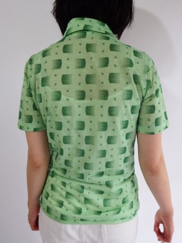 ★レトロモダン柄の緑シャツ