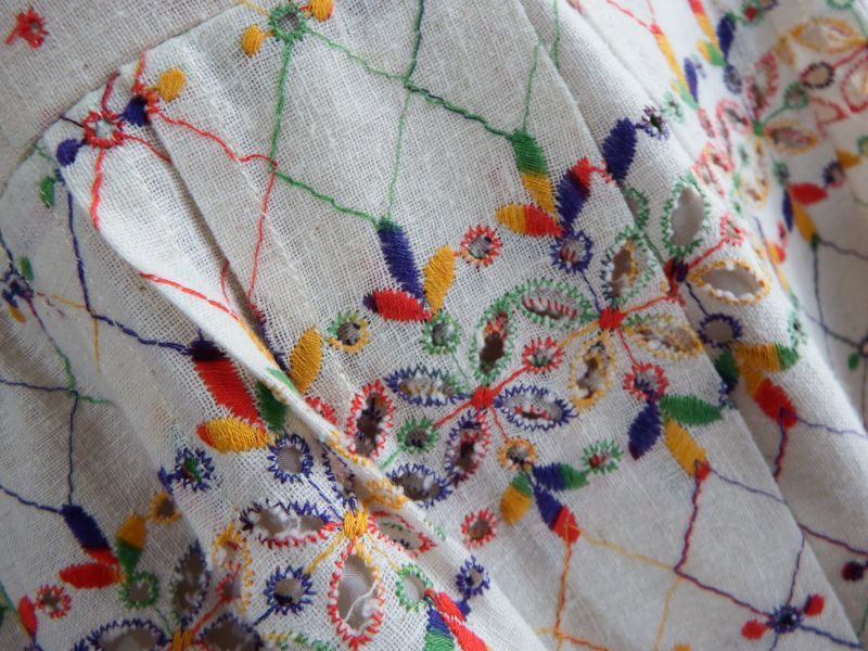 カラフル糸で刺繍されたお花のヴィンテージワンピースです♪