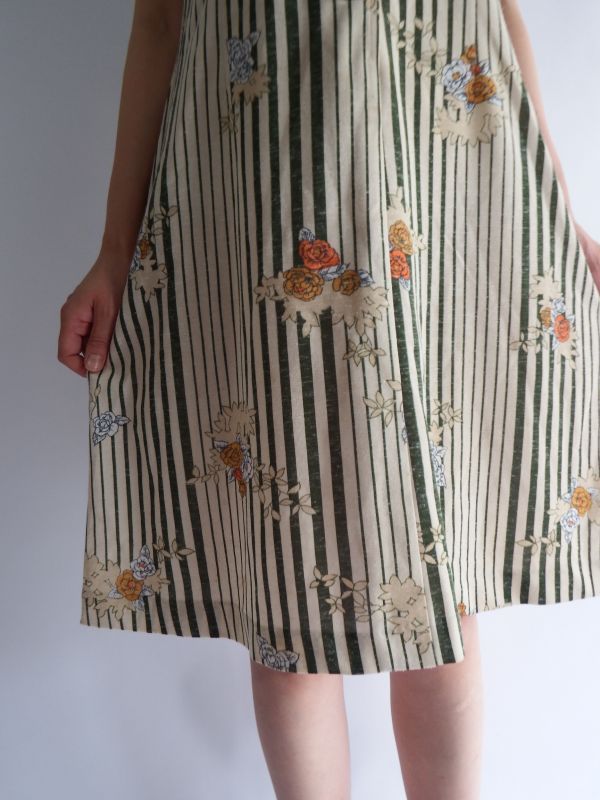 ★ストライプとお花のレトロワンピ [clo0621a]