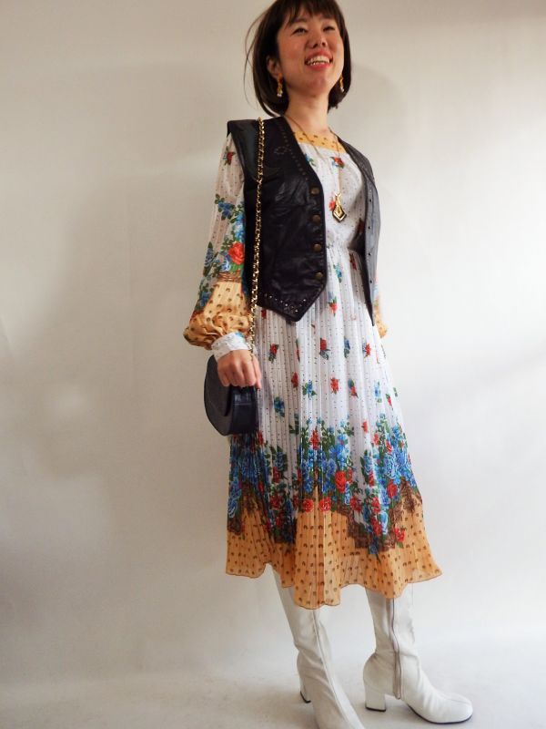 ウエスタンブーツが似合いそうなヴィンテージプリーツワンピースです♪