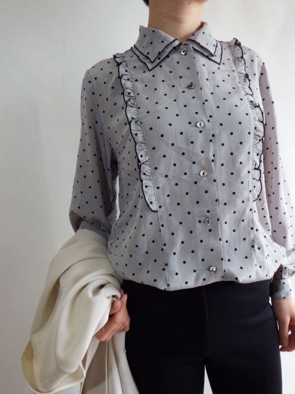 ドットの黒に合わせた黒ボトムスをセレクト。