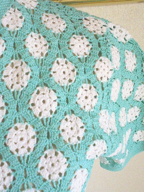 爽やかでとってもキレイなお色のレース編みカーディガンです。