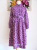 紺地に紫がかったピンク色の葉っぱ柄デザインのヴィンテージワンピースです。