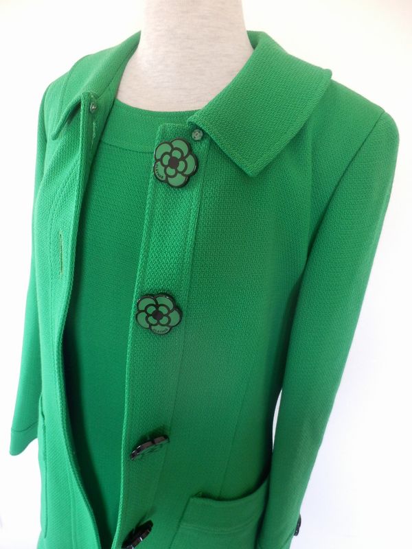 クレイサス*グリーン色お花ボタンのコート&ワンピセット