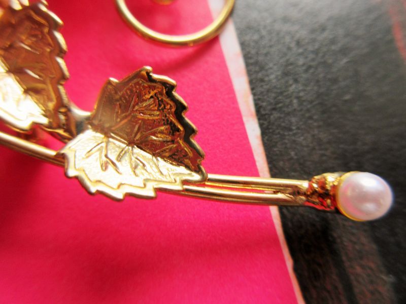 未使用*葉っぱとお花のフェイクパール装飾ブローチ