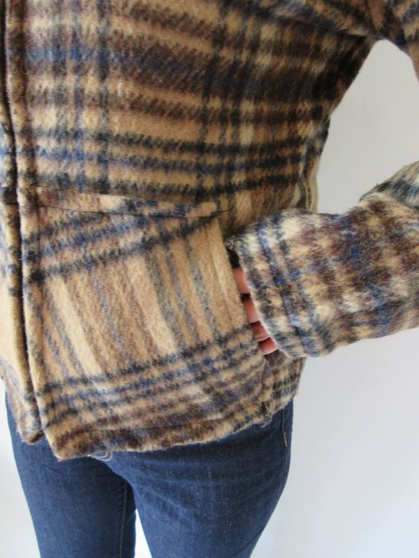 落ち着きのあるトーンのチェックがオシャレなアウターです。