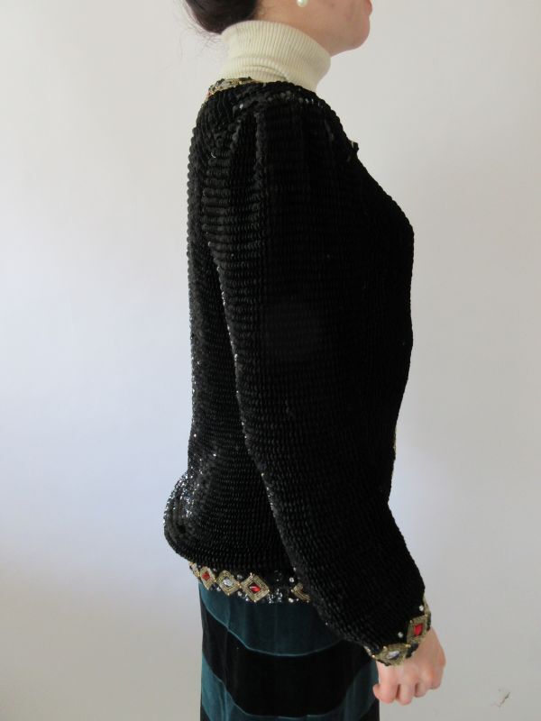 レディーな雰囲気が大人可愛いスパンコールジャケット。