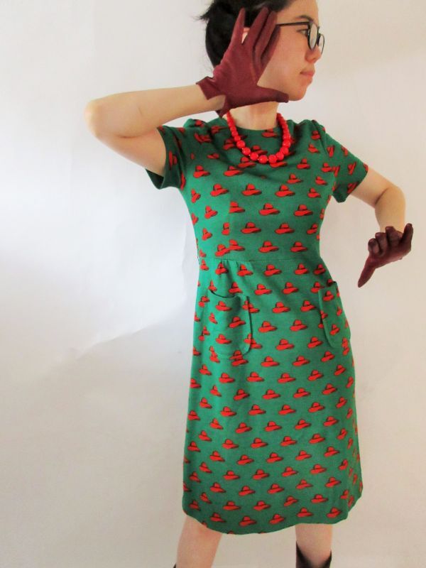 レトロ好きさんには欠かせないグリーンのヴィンテージワンピース。