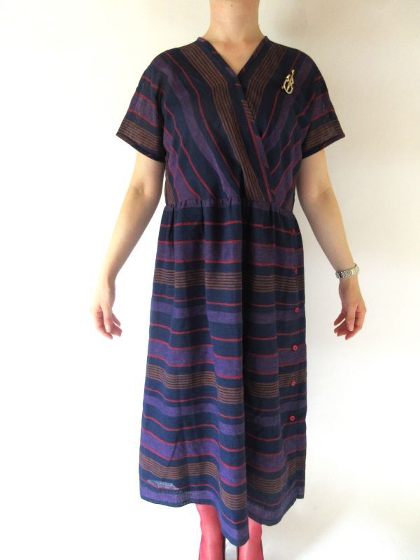 おとなっぽ配色ストライプのワンピース [clo0726]
