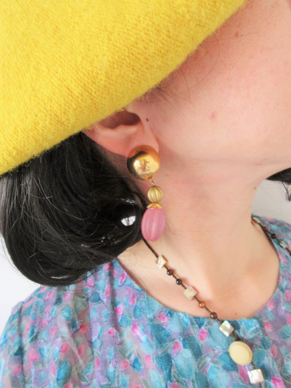 大人っぽい遊びを感じるガラスビーズ風パーツのイヤリング。