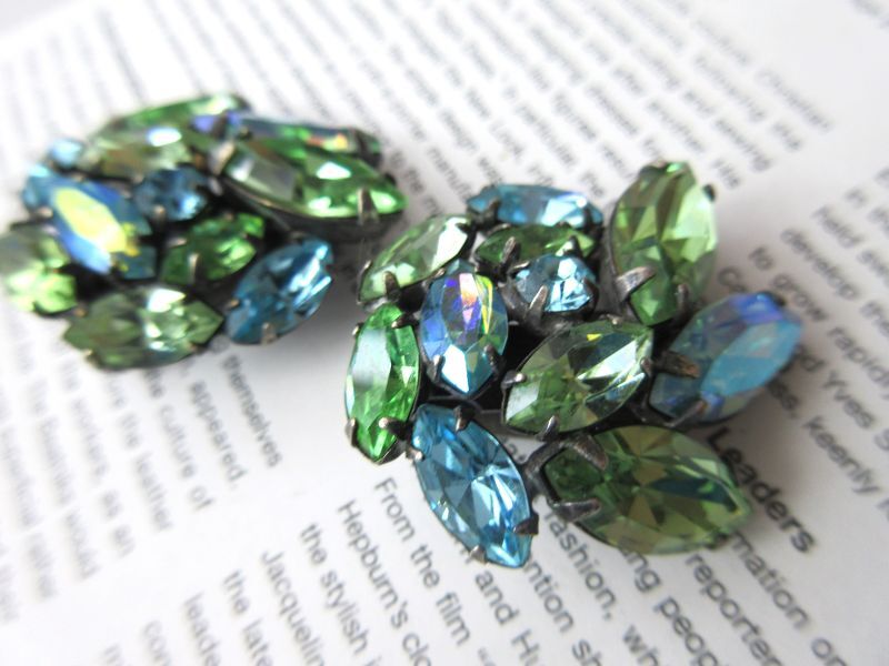 【今だから似合う*】ブルー×グリーンラインストーンイヤリング [clo0301]