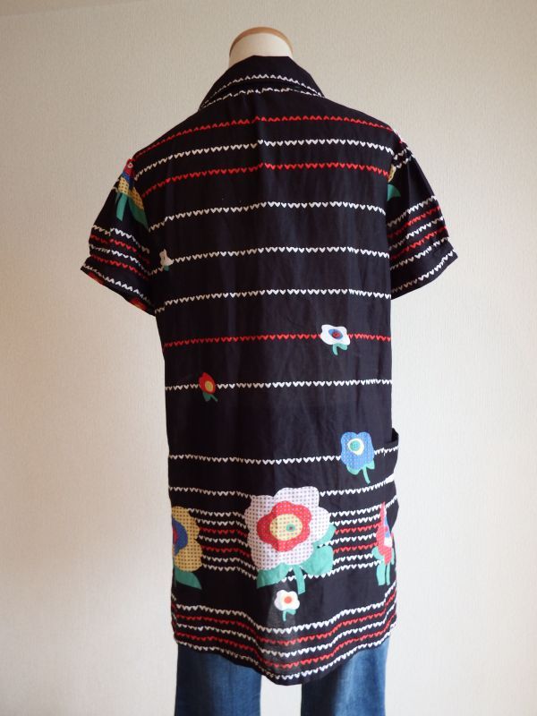 お花&ハート柄トップス [OK-47] お花&ハート柄トップス [OK-47] お問い合わせ お気に入り登録 レトロでポップなお花とハート柄のトップスです♪薄手の素材なのでこの時期に嬉しいですよね!ベルボトムとコーデしてとびっきりレトロでキュートなスタイルもバッチリはまりますよ^^ サイズ* 着丈78、肩幅38、袖丈19、身幅50、バスト100、裾幅62 素材*伸縮性 綿50%、ポリエステル50% 着用時の伸縮性なし 製造国* 中国製 コンディション*古着にご理解ある方でしたら喜んでいただけるいいコンディションです。 他の写真