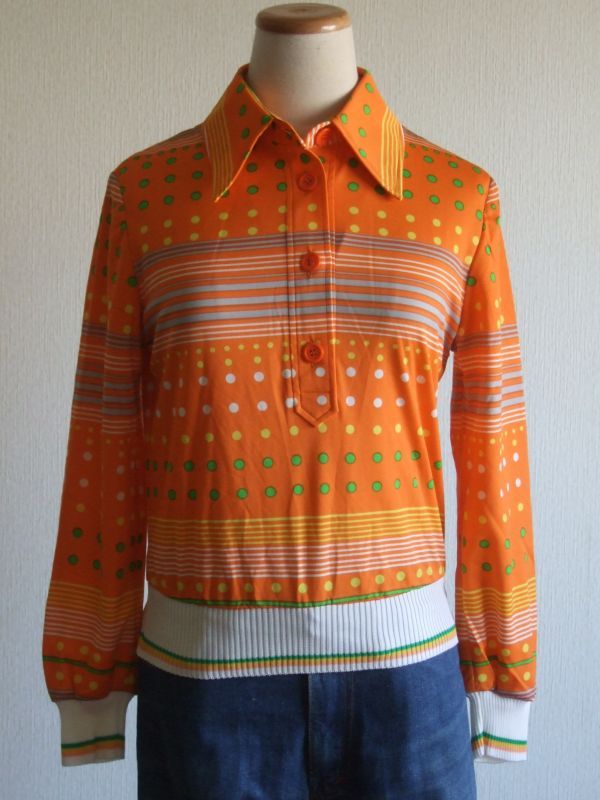 カラフル水玉&ボーダートップス [OK-166] カラフル水玉&ボーダートップス [OK-166] お問い合わせ お気に入り登録 元気いっぱいレトロカラーのヴィンテージトップスです♪ リブニットとの切り替えもカワイイでしょー^^ シンプルにデニムにONするだけでレトロ度がグンとアップします♪ サイズ* 着丈51 肩幅37 袖丈56 身幅45 バスト90 裾幅24(伸縮性あり) 素材*伸縮性 ポリエステル リブのニット部分アクリル 着用時の伸縮性あり 製造国* 日本製 コンディション* 古着に十分ご理解ある方でしたら喜んでいただけるコンディションです。 他の写真