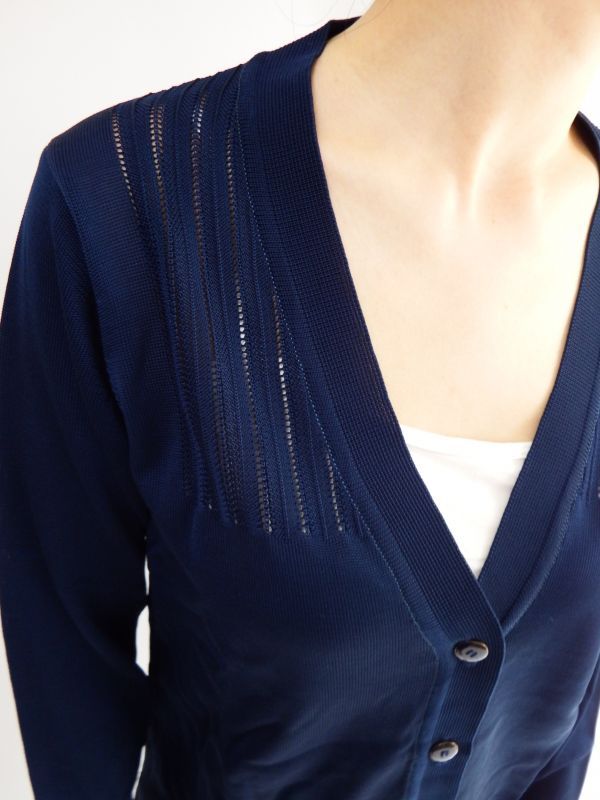 ほのかにストライプの透かし編みデザインが入っています。