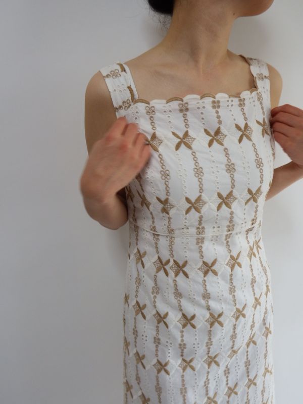 上品な刺繍柄のお仕立て品のヴィンテージワンピースです♪