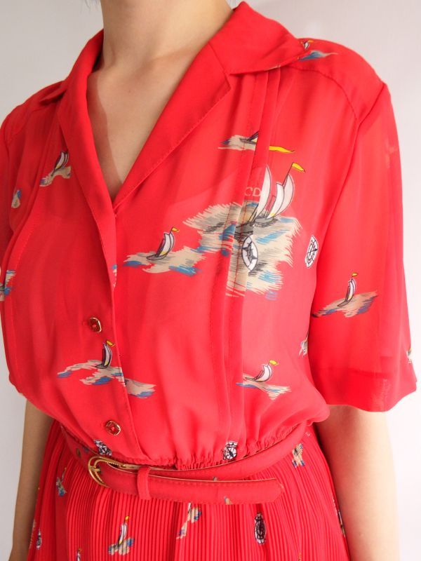 とっても可愛いヨット柄がマリンな印象のヴィンテージワンピです!