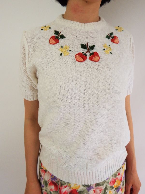 ★未使用*苺とお花刺繍ニット [clo0615h]