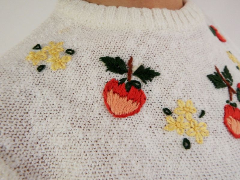 刺繍のデザインが極上可愛いヴィンテージニットです♪