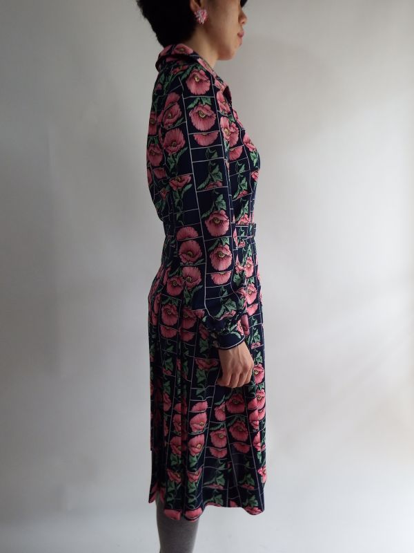 ★お仕立て品*紺地にレトロなお花柄ワンピ