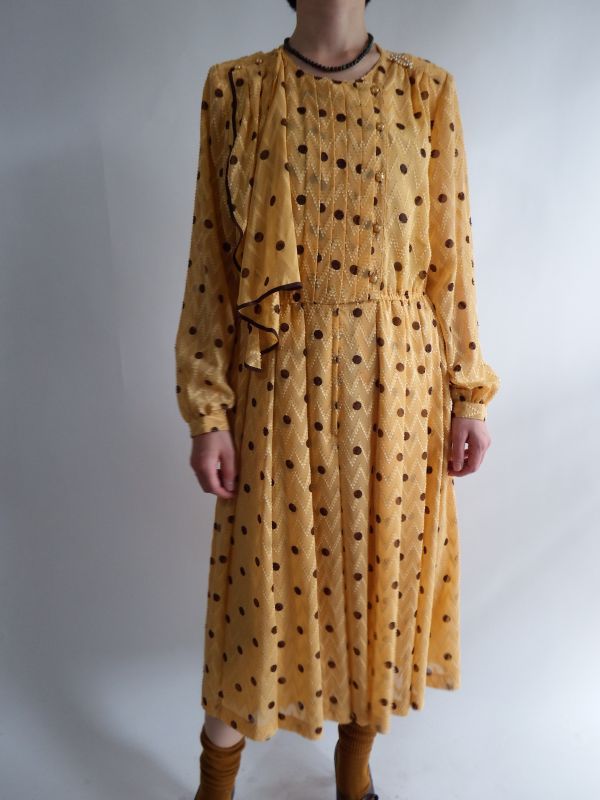 大人可愛い透かしデザインの生地に水玉柄が上品なヴィンテージワンピースです♪